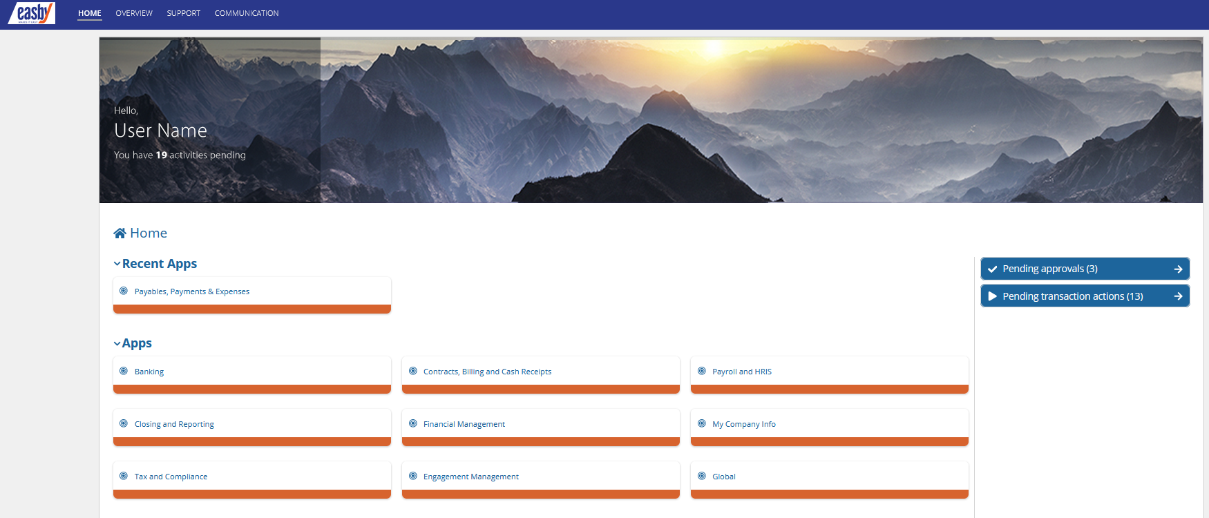 To view the Payables Payments & Expenses application in Easby, click on “Payables, Payments, and Expenses” on Easby’s home screen.